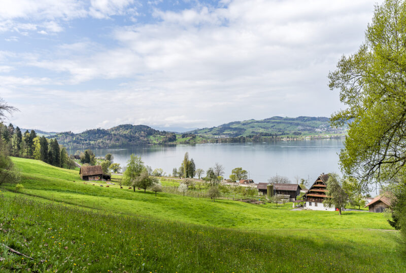 A caminhada de Zug até Walchwil é um passeio especialmente recompensador para fãs das flores de cerejeira na primavera. Entre março e abril, cerejeiras floridas margeiam a tril